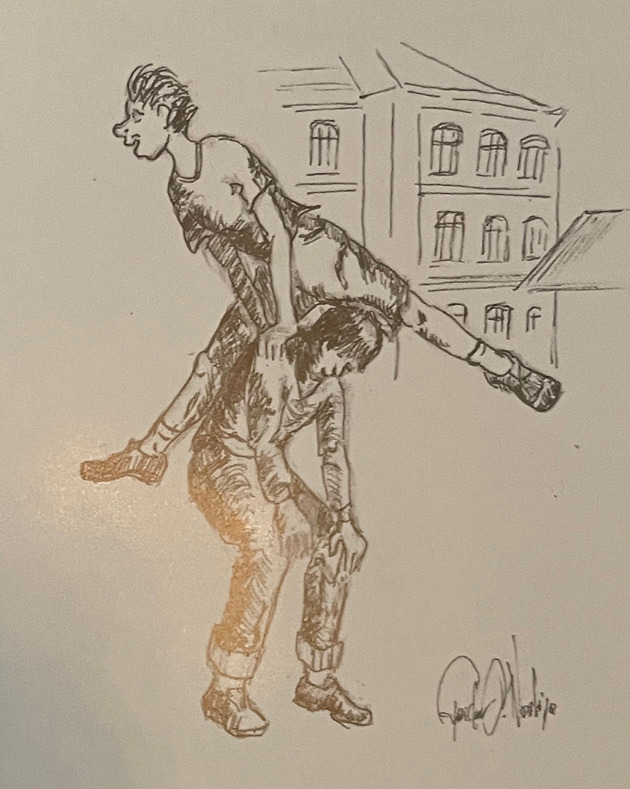 På lærerværelset var det oppstandelse, og flere lærere kom løpende. Ole B. Stene tok kommandoen og skaffet seg raskt oversikt over guttenes tilstand. Han hastet inn på doen og kom ut igjen med tre avskutte fingre lagt i et lommetørkle. Veien til Dr. Vatne i nabobygget var kort. Underveis til legen jamret Tom seg og sa hikstende til Stene: – Jeg kan ikke se på det ene øyet! Da svarte en fattet lærer: – Ti stille gutt, det får legen avgjøre! (Fra boka ”Vi – Guttane på Gutteskolen”.)